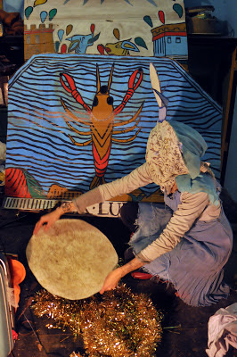 White Gourd collaborates with gong, saxophone, machetes, bass, keys, bells, & drums, accompanied with a full visual installation, and ritual costume, the presence of each performance has a completely different effect with the chosen card for the evening or tour. She is also well known for her involvement as vocalist & saxophonist in the experimental ensemble Million Brazilians.